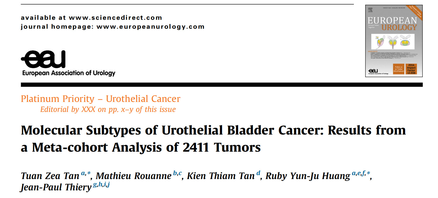 Eur Urol | 膀胱癌分子亚型META分析