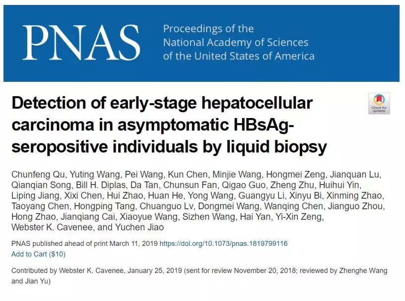 PNAS︱中国学者利用液体活检对无症状乙肝病毒携带者进行肝癌筛查