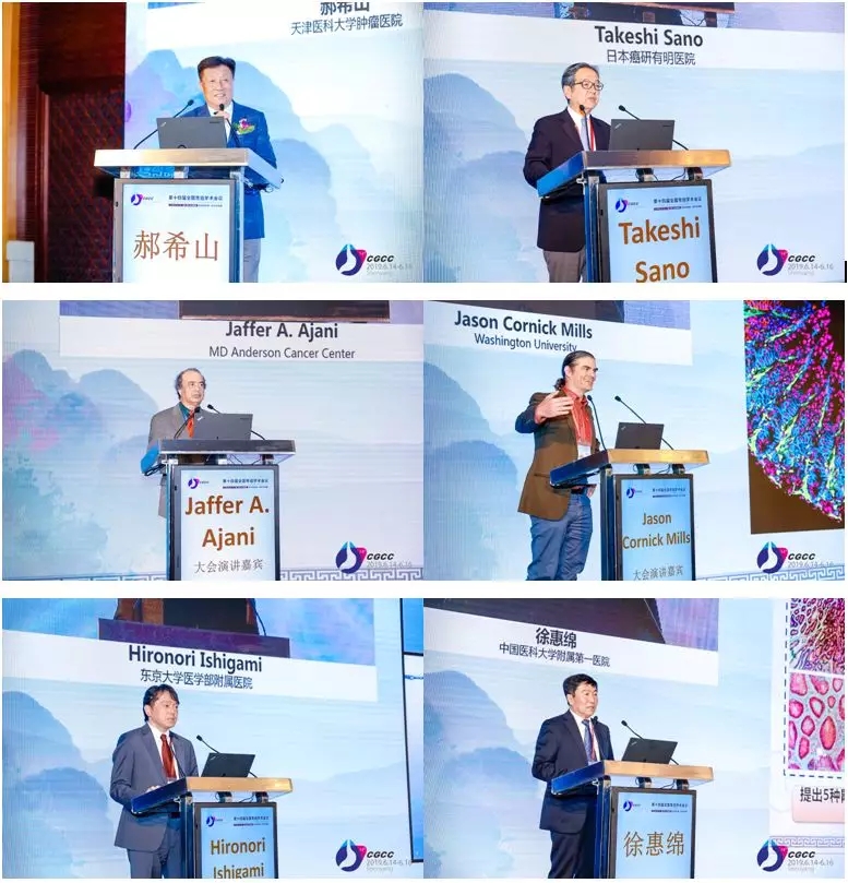 随后展开的大会主旨报道邀请国内外著名胃癌领域专家针对胃癌领域前沿问题进行了深度剖析。郝希山院士以《胃癌防治研究》为题回顾了我国胃癌防治工作在胃癌的筛查与预防研究,诊断与治疗研究,以及基础与临床研究等方面取得的巨大进步,并指出只有加强国际交流合作,确保临床与基础研究并行,才能推动我国胃癌防治事业稳步发展。日本癌研有明医院院长Takeshi Sano 教授以《胃癌临床数据库》为题分享了日本胃癌临床数据库构建与临床应用的相关经验。美国安德森癌症中心Jaffer A. Ajani 教授从生物学和临床策略两方面,详细阐述了如何改善局部进展期胃癌的预后等相关研究。华盛顿大学Jason Cornick Mills 教授在报告中发现并定义了肿瘤中“paligenosis”这一生物学行为,详细阐述了化生与胃癌发生发展的密切联系。石神浩德教授以《腹膜转移胃癌的多学科协作治疗》为题分享了日本东京大学附属医院的宝贵经验。最后徐惠绵教授作为大会主席,进行了本次大会的主席报告。报告以“传承中创新,协作中发展”为主题,重点介绍了我国胃癌防治事业中取得的成果及在胃癌防控和临床转化研究中面临的热点、难点问题。