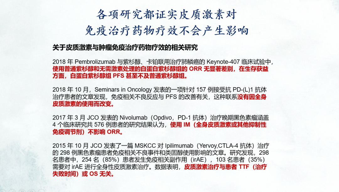 (2)激素的使用是否会影响免疫药物的治疗?