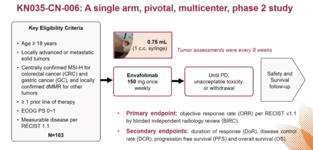 所有患者都接受envafolimab治疗,每周给予150 mg皮下注射,直至出现进展、不可接受的毒性或停药。