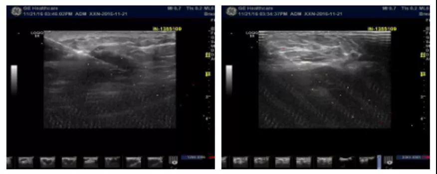 2016-11-22在超声引导下行“右侧乳腺肿物及腋窝淋巴结穿刺活检术”。