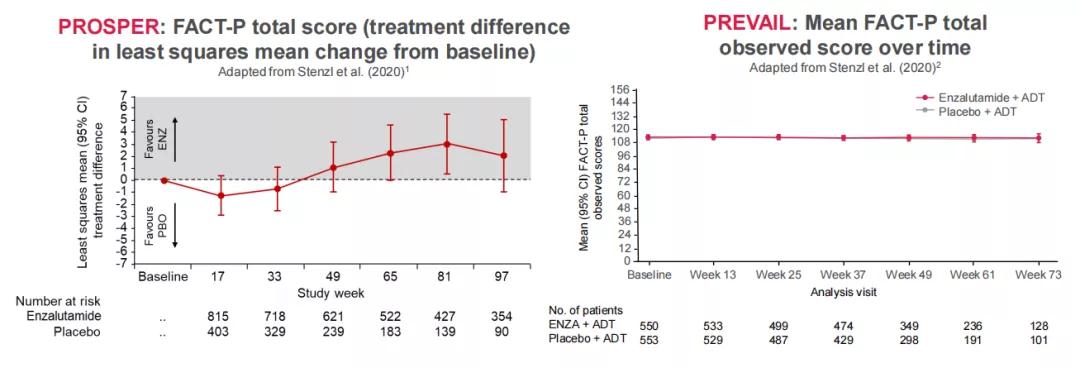 PROSPER、PREVAIL研究恩扎卢胺 vs 安慰剂治疗患者的FACT-P评分
