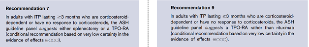 事实上,目前国内外指南对于TPO-RA的推荐地位日渐提升,在《成人原发免疫性血小板症-2018年版》中明确将罗普司亭为代表的TPO-RA推荐位ITP二线治疗的重要选择,另外需要指出的是,2019年ASH中关于ITP指南也明确提出,对于糖皮质激素治疗3个月以上无反应的成人ITP患者,ASH推荐TPO-RA,而非利妥昔单抗。再者,2019年ITP国际共识报告也明确推荐(Ib级,A类推荐)TPO-RA作为ITP二线治疗的关键药物。