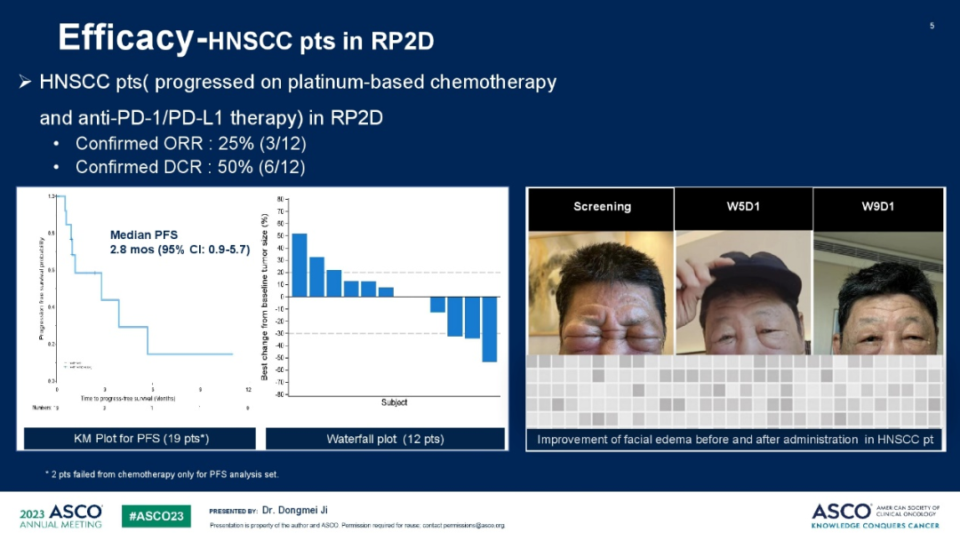 在6月5日也公布了许多头颈肿瘤研究,包括“Oral Abstract Session”和“Poster Session”等环节。来自中国的很多教授,特别是马军教授在“Late-Breaking Abstract Session”环节介绍了信迪利单抗联合化疗方案进行诱导治疗的数据,分享了中国方案的疗效。